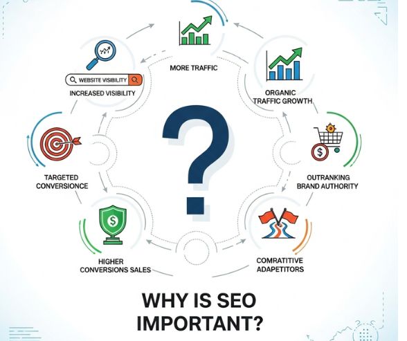 SEO (Search Engine Optimization) is essential for any business looking to succeed online. It helps your website rank higher on search engines, making it easier for potential customers to find you. Higher rankings lead to increased visibility, more organic traffic, and better credibility. SEO also improves user experience, site speed, and mobile-friendliness, which keeps visitors engaged. By targeting the right keywords and optimizing your content, SEO attracts qualified leads who are more likely to convert. In today’s digital world, investing in SEO is crucial for growth, brand authority, and long-term online success.